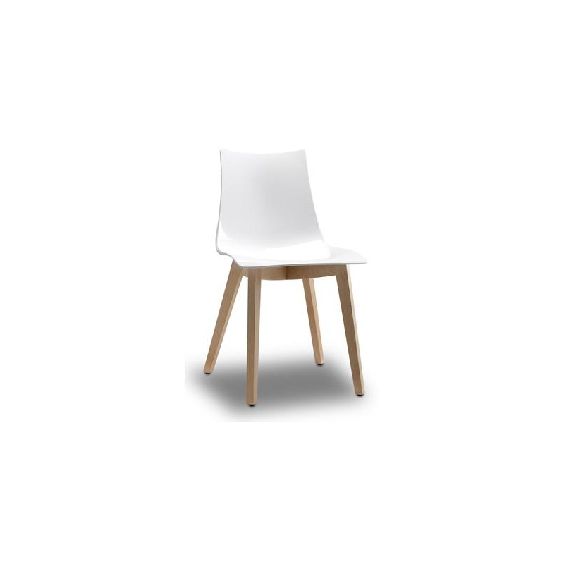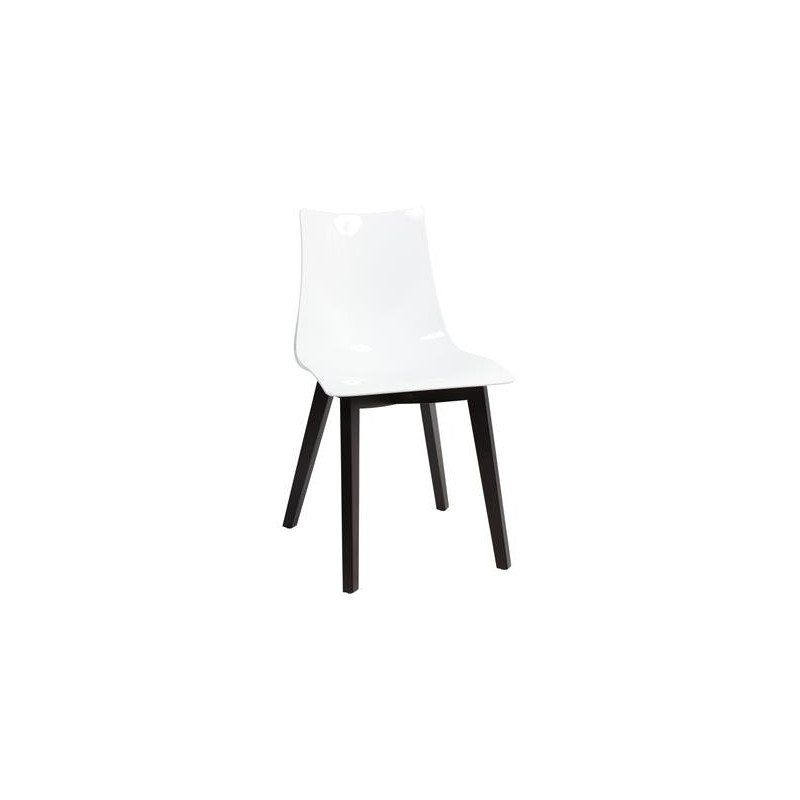 Made from Moulded Polycarbonate & Timber Solid Beech Cross Leg Timber Frame Gloss Finish Available in White or Dove Grey with Natural or Wenge Legs